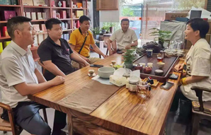 为进一步增进宁波市漳州商会各企业之间的沟通交流,8月13日上午,商会常务副会长林一辉带领副会长林锦泽、林明法、谢添泉、秘书长林添民一行到理事苏志平(上晨食品有限公司)、理事陈水彬(诚友茶庄)、理事林玉(美林之家〈和一轩〉家居馆)走访交流。
